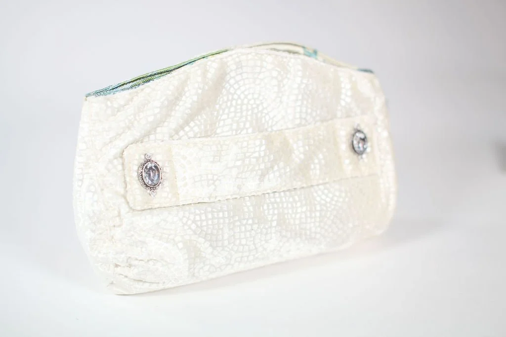 Our Victoria is a clutch great for a night out on the town. It’s big enough to hold your essentials - keys, small wallet, phone. It also has an interior pocket that is divided into two smaller pockets to hold smaller items. The outside handle is made of soft material such as velour that is gentle on the hand. Slide your hand through the front strap and you’re ready to go!